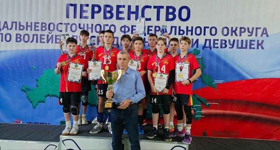 ПЕРВЕНСТВО ДАЛЬНЕВОСТОЧНОГО ФЕДЕРАЛЬНОГО ОКРУГА ПО ВОЛЕЙБОЛУ СРЕДИ ЮНОШЕЙ ДО 14 ЛЕТ С 9 по 14 декабря 2025 года в спортивном центре города Лесозаводска проходило первенство Дальневосточного Федерального округа по волейболу среди юношей до 14 лет. В соревнованиях принимали участие 12 команд из Дальневосточного Федерального округа. В результате пятидневной борьбы команда юношей «Орбита» МОБУ «СОШ №5 ЛМО» заняла первое место. Второе место у Хабаровской краевой спортивной школы олимпийского резерва. Третье место заняла команда «Обличье» (г. Облучье, Еврейская АО), а 4 место – «Манчары» (Саха Якутия). За весь турнир команда отдала всего одну партию команде Якутии, а остальных соперников наши ребята победили с одинаковым счётом 3:0. В составе команды принимали участие следующие игроки: Столетний Тимур, Краснов Максим, Игнатенко Павел, Самарянский Сергей, Смирнов Имин, Шлихтенко Никита, Новоселецкий Семён, Пономаренко Владислав, Козорез Дмитрий, Дыбский Юрий, Малярук Григорий. Лучши