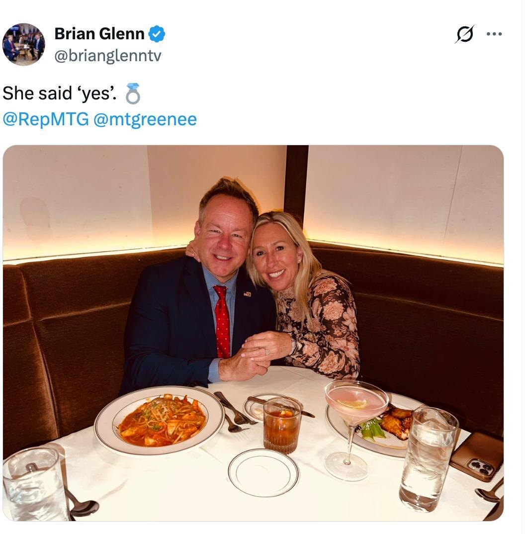 MTG is now ENGAGED to Brian Glenn, White House correspondent for Real America’s Voice