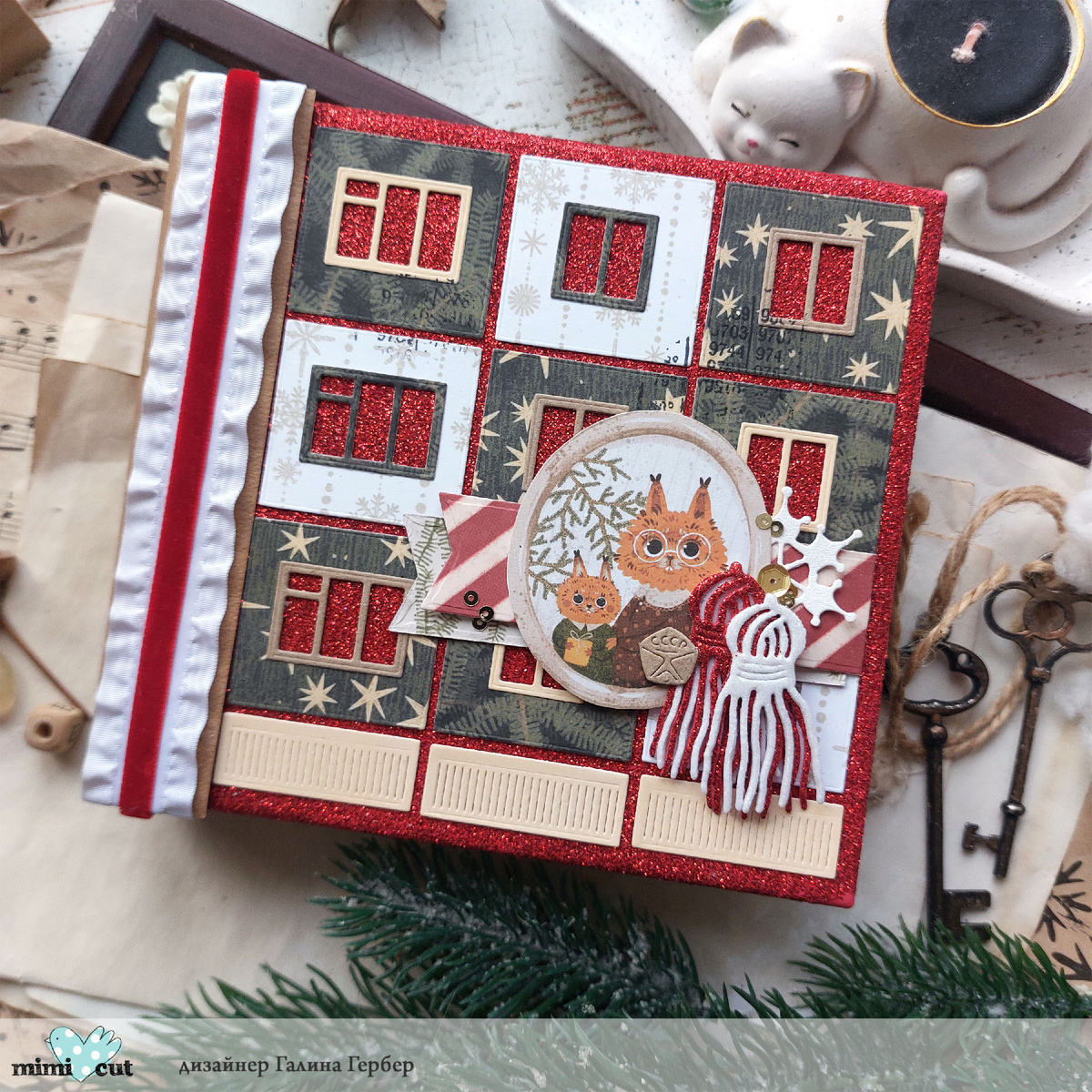 "Вот и окна в сумраке зажглись" - именно так я, Галя Гербер, назвала свой новогодний миниальбом. Мне срочно понадобился подарок для друга в ретро стиле. Ничего похожего в запасах не нашлось, поэтому я решила выкрутиться с помощью ножей Mimicut. На обложке разместила панельку и небольшую композицию из кисточек, флажков и снежинки (наборы "Снегопад", "Слова для души", "Наше вам с кисточкой"). Знак качества СССР (сет "Коктейль на пляже") финалит представленный ансамбль, возвращая нас в наше уже далёкое советское детство. Внутри спряталось не меньше ножей. Здесь и ламповый телевизор из набора "Голубой огонёк", и "Автомобиль с подарками" без автомобиля, и "Хлопковый бутон", и многие другие. За основу я взяла рамочки из набора "25-й кадр". Внутреннюю часть кое-где тиснила папкой "Ни слова больше". На каждой страничке разместила "Важные слова", вырубленные из белого фоамирана. Сет "Не просто слова" тоже спрятался на одном из разворотов. Люблю использовать неочевидные для заданной темы на