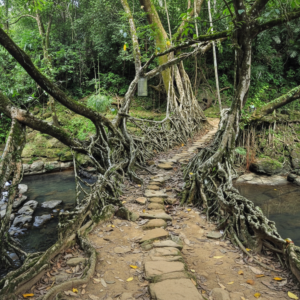 Представьте мост, который с каждым годом становится не слабее, а крепче. Которому 500 лет — и он всё ещё растёт. Звучит как фантастика? А это реальность в индийском штате Мегхалая. В мире, где бетонные мосты трескаются через 50 лет, а стальные ржавеют, существуют живые мосты из корней деревьев. Их не строят инженеры с чертежами — их выращивают местные жители, и процесс занимает десятилетия. Но результат превосходит многие современные конструкции и идеально адаптирован для этого климата. Почему здесь? Мегхалая — одно из самых влажных мест на планете. Здесь выпадает до 12 метров осадков в год. Для сравнения: в Москве — всего 70 сантиметров. В таком климате обычные деревянные мосты сгнивают за пару лет. Бетон размывается наводнениями, да и доставить материалы сюда непросто. А племена кхаси и джантия нашли гениальное решение: не рубить дерево для моста, а заставить его...расти через реку. Как вырастить мост Всё начинается с фикуса эластика — каучуконосного дерева высотой до 40 метров. У