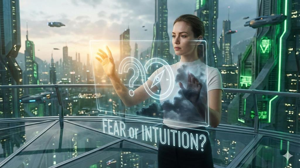 - Спроси себя: "Здесь и сейчас?". Страх всегда уводит тебя либо в прошлое (воспоминания о неудаче), либо в будущее (катастрофизация). Настоящая интуиция, в отличие от тревоги, — это голос, который говорит только в настоящем моменте. Если ты ловишь себя на мыслях о том, что "будет" или "было", это уже не чистый интуитивный сигнал, а умственный шум. Если ты не знаешь, что тебя беспокоит, это беспредметное беспокойство — иррационально. Спроси себя: "Насколько реалистично я оцениваю свое положение?".