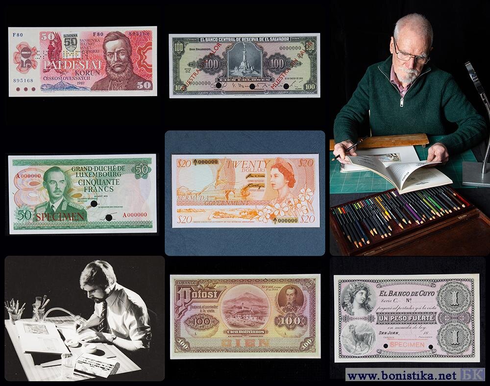 Британская аукционная компания Special Auction Services (SAS) продала с торгов коллекцию проектов, образцов и готовых банкнот, а также почтовых марок компании Bradbury Wilkinson & Co (BWC). Коллекция принадлежала художнику компании Ричарду Адамсу (Richard Adams, на фото), работавшего в BWC с 1972 по 2016 годы.