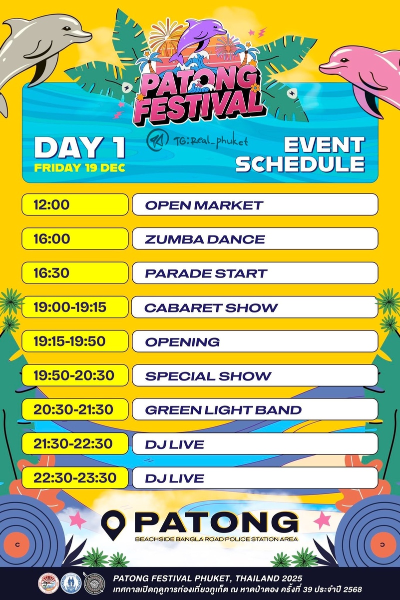 19.12-21.12 будет проходить Patong Festival 2025 Движение будет очень сильно затруднено 19го числа, особенно на открытие, будут очень большие пробки. Планируете объездные маршруты на открытие заранее! @real_phuket