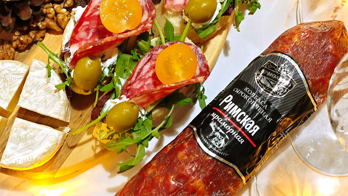 * В отзыве сохранены авторский стиль и пунктуация Честно говоря, я обычно колбасы покупаю в другом месте, но вот коллега на работе так расхваливала «Римскую мраморную» от «ЕРМОЛИНО», что и я решила попробовать. И знаете что? Не зря! Во-первых, сразу привлекла внимание упаковка, выглядит ну очень солидно, а через пленку проглядывается мраморный узор, на срезе так вообще красота. При распаковке сразу чувствуется ненавязчивый, но заметный и аппетитный аромат копчения. Сразу скажу, что великих надежд не возлагала. Но до чего же она вкусная! Конечно, это не что-то необычное, но колбаса и вправду не жирная, плотная, соли в меру. Пряности ощущаются, особенно кориандр, чеснок и черный перец. Все сочетается вполне достойно, хочется еще кусочек и еще. Пока резала, несколько кругляшков «продегустировала». Такую колбасу точно нужно ставить на праздничный стол. Гости уплетут за милую душу — доказано. Колбаса дает яркий вкус, поэтому я обычно нарезаю тонкими ломтями, подаю с разными видами сыров,