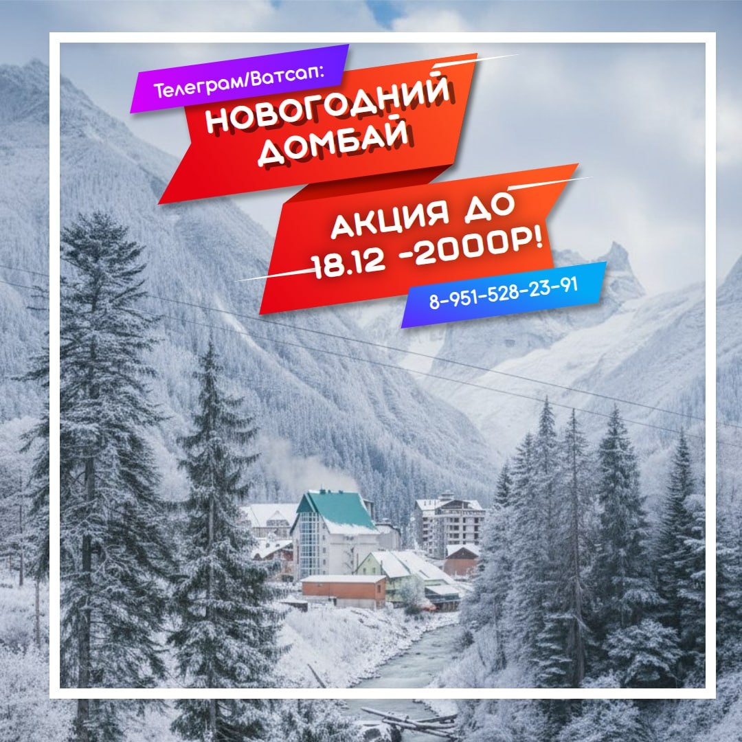 💛💛💛💛💛 💛 Время путешествия! 🤩🤩🤩🤩 Объявляем 🤩🤩🤩🤩 скидку 🤩🤩🤩🤩 на тур! ⚡️СКИДКА —2000Р НА ВСЕ КАТЕГОРИИ!* 😝Тур в Домбай на Новый год 2026 29 декабря-2 января 😉от 26950Р вместо 28950Р✖️ Что нас ожидает: ✅Катание на лыжах, сноубордах, санках, ледянках! ✅Фото с арт-объектами; ✅местный рынок; ✅вкуснейший хычин, ароматный глинтвейн и восхитительный домбайский чай; ✅Новогодний ужин и встреча Нового года! ✅Тебердинский заповедник; ✅форелевое хозяйство; ✅озеро Кара-Кель; ✅термальный источник Цунами. Доп. расходы: 📍подъем на канатно-кресельной дороге ~2900Р 📍Новогодний ужин (спиртное своё) – 3200Р/чел. 📍термальный источник – 500Р 📍питание, не включенное в стоимость тура 📍личные расходы. 🟡ПРОГРАММА ТУТ🟡 *Акция действует до 18 декабря включительно. Связаться с менеджером: Телеграм/WhatsApp: 8-951-528-23-91