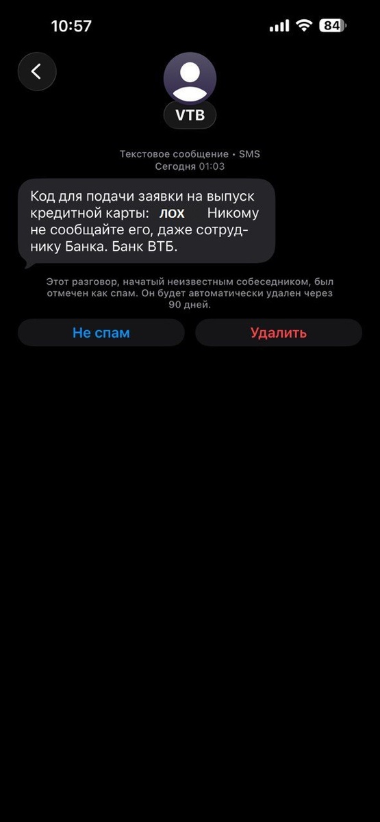 Спам рассылка от VTB банка #VTB - я тебя на одном месте вертел и это не шампур. Если ты решил, что я сова, то ты глубоко ошибся. Хватит слать эту чепуху по ночам.