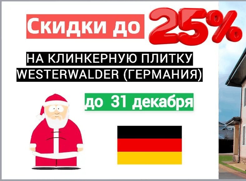 π ΠΠΎΠ²ΠΎΠ³ΠΎΠ΄Π½ΡΡ ΡΠ°ΡΠΏΡΠΎΠ΄Π°ΠΆΠ° Π² ΠΠΈΠΏ ΠΠ»ΠΈΠ½ΠΊΠ΅Ρ β Westerwalder Klinker ΡΠΎ ΡΠΊΠΈΠ΄ΠΊΠΎΠΉ 25