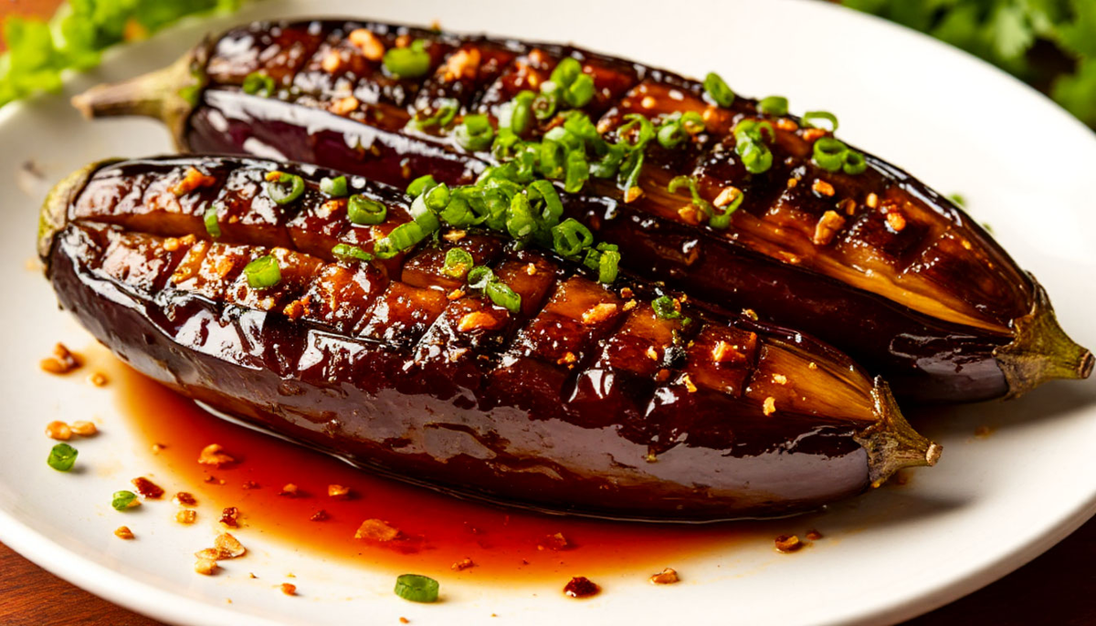 Что делала: баклажаны можно обжарить или запечь. Варим соус: добавляем соевый соус, мед, чеснок, растительное масло и увариваем. Добавляем соус на баклажан и присыпаем кунжутом.