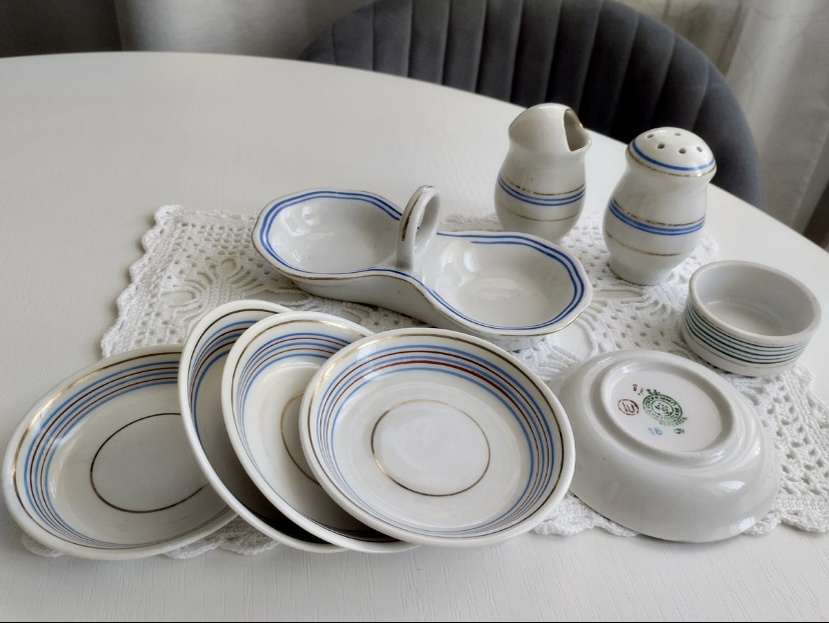 Тарелочки с голубой каемочкой от Лилита Мяу. Полосатый рейс включает с себя предметы Вербилок и корейский фарфор.