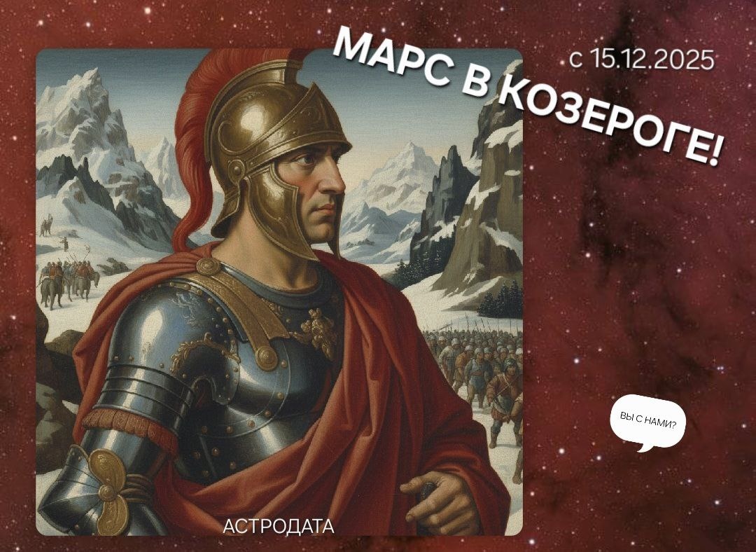 ВСЕХ ПРИВЕТСТВУЕМ!🤗 Наш астрологический календарь сообщает: 🗓️ 📢 15 декабря 2025 года активная планета Марс ♂️ переходит в знак Козерога ♑️. Его мощная энергия освобождается от стремления к идеалам и направляется на достижение конкретных целей, построение карьеры и долговременных структур. Наступает период, благоприятный для проявления дисциплины, стратегического планирования и упорного труда. ТЕМА: "МАРС В КОЗЕРОГЕ! Энергия на службе цели, амбиций и результата!" Читайте далее в комментариях... 👇 #астрология #астродата #марс #козерог #практическая_астрология
