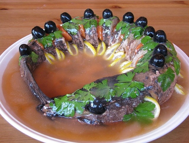 В кухне каждого народа есть свое «коронное» блюдо. В еврейской это бесспорно гефилте фиш или фаршированная рыба. С рецептом фаршированной рыбы примерно та же история, что и у нас с рецептом борща – каждая еврейская хозяйка фарширует рыбу по-своему и искренне считает, что её фиш самая вкусная и правильная, а уж если не её, то бабушкина, мамина или, на худой случай, свекрови. Представляю вам мой «правильный» рецепт фаршированной рыбы, доставшейся мне от бабушки моей сокурсницы, знавшей толк в этом блюде. Попробуйте! Для рецепта вам понадобится: