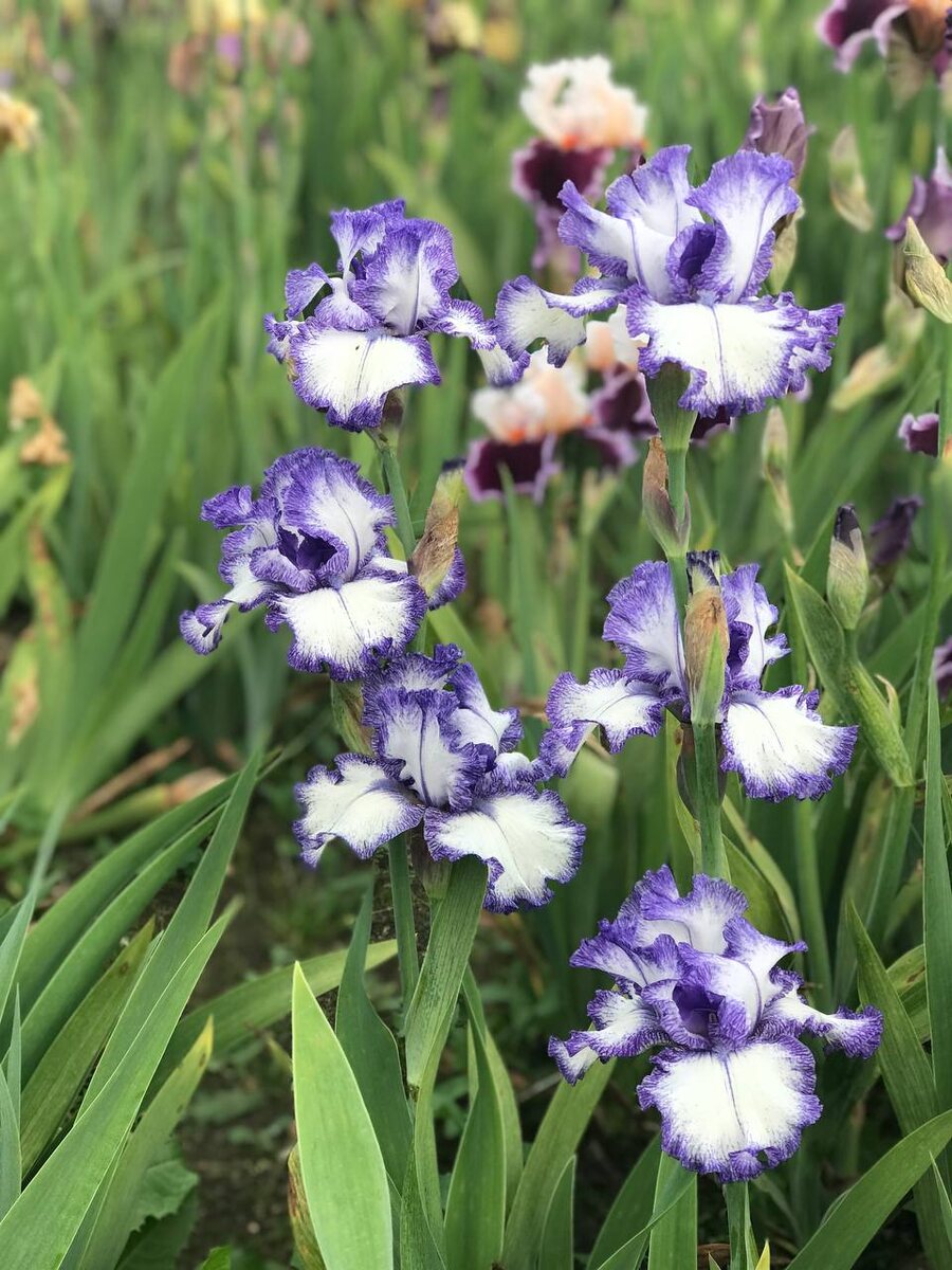 Высокий бородатый ирис «Ink Patterns» (Чернильные Узоры) — Ослепительно белые, пышно гофрированные лепестки, будто тончайший батист, по которым природа провела уверенной рукой художника-каллиграфа. По краям — четкие, чернильно-синие штрихи и полосы, а на верхних лепестках — таинственные размытые акварельные разводы с тончайшей пунктирной линией. · Контрастные темно-индиговые рыльца добавляют драматизма и завершенности. · Легкий изысканный аромат дополняет образ. Этот ирис — признанный чемпион. Его титулы говорят сами за себя: Похвальный отзыв (2009), Награда за заслуги (2011) и высшая награда — Медаль Уистера (2013). Он создан, чтобы блистать на выставках и покорять сердца в вашем саду. ✅ В наличии.
