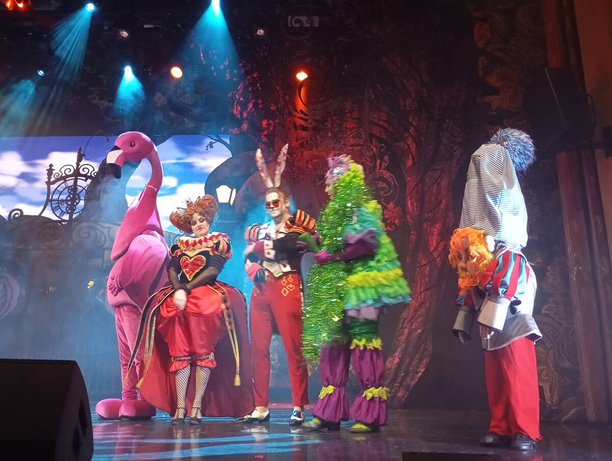 А если у вас нет детей и вы никого из актеров не знаете? Все равно приходите, ибо создатели мюзикла (в первую очередь композитор и режиссер, Глеб Матвейчук и автор текстов песен Карен Кавалерян) сделали массу отсылок к нашей жизни, тут и цитаты из песен, и упоминание коммуналки, и «У меня лапки», и многое другое. А актеры эту линию живо подхватили и от души веселятся, вставляя фразы на злобу дня. В результате кажется, что Алиса, Шляпник, Кролик, стражники – не просто сказочные персонажи чопорного англичанина, написавшего книгу полтора века назад, но твои старые знакомые, близкие по менталитету.