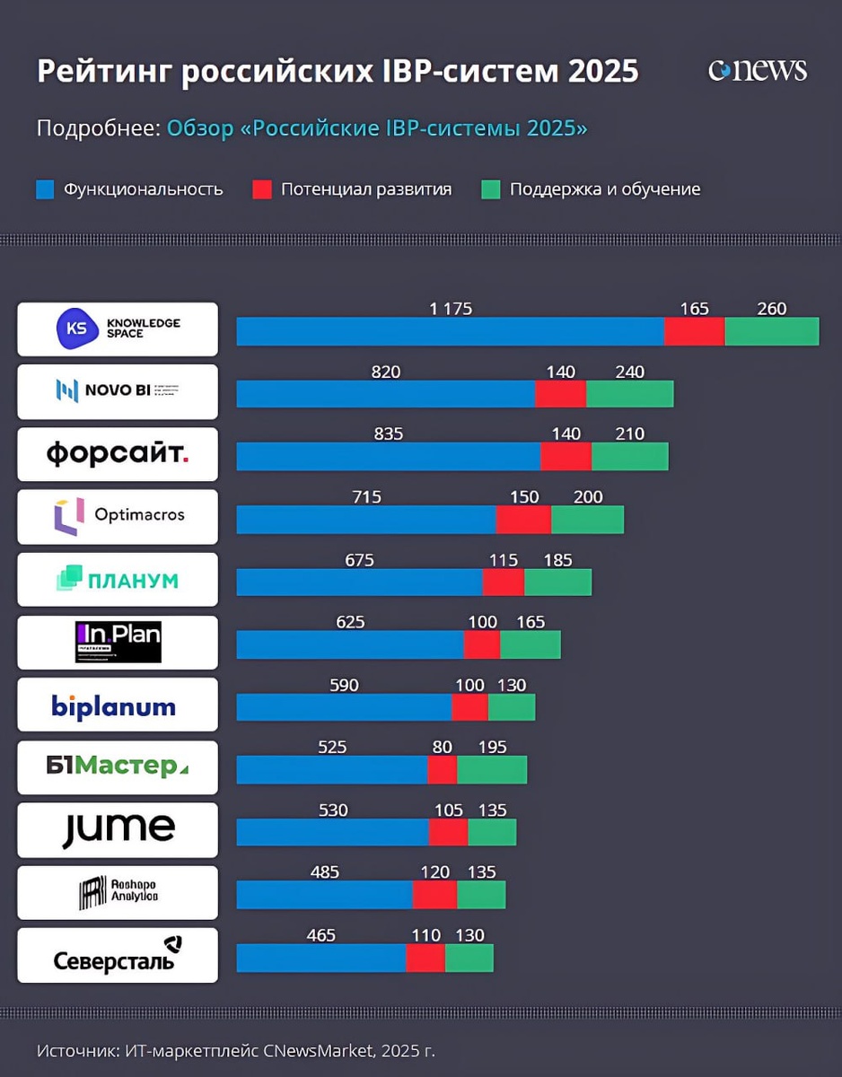 KS – лидер рейтинга IBP систем 2025 от CNews Три года подряд платформа KS лидирует в рейтингах российских IBP систем. В 2025 году в исследовании от CNews приняли участие вендоры 11 IBP-решений. Системы оценивались по более чем 100 критериям, некоторые из которых требовали видео-подтверждения. Отметим, что в этом году аналитиками CNews было проведено самое глубокое исследование рынка из всех, существующих на данный момент. Ознакомиться с материалами можно по ссылкам: ➡️ Главная страница рейтинга ➡️ Обзор: Российские IBP-системы 2025 ➡️ Итоговый рейтинг ➡️ Рейтинг по функциональности ➡️ Рейтинг по потенциалу развития ➡️ Рейтинг сервисов поддержки и обучения ➡️ Справочная информация об IBP системах Отрывок из обзора CNews о KS: «Вендор имеет подтвержденный полнофункциональный портфель IBP-модулей и заметно опережает конкурентов по критериям «Широта инструментов визуализации» и «Возможности для кастомизации решений без программирования». Отдельно следует отметить очень высокий уровень