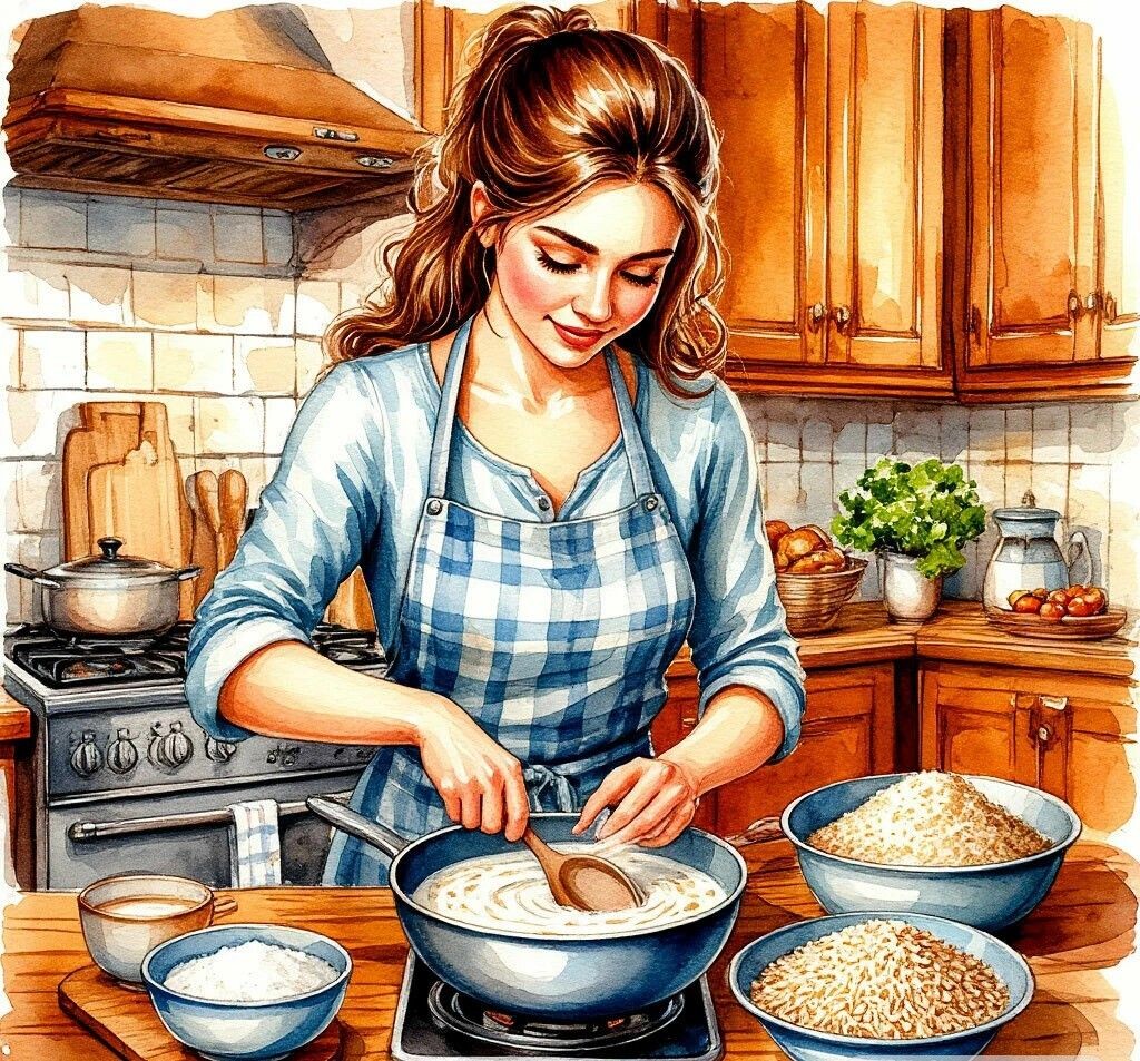 🍶Если используете сухое молоко, разводите его в тёплой воде до полного растворения, затем добавляйте в кашу.