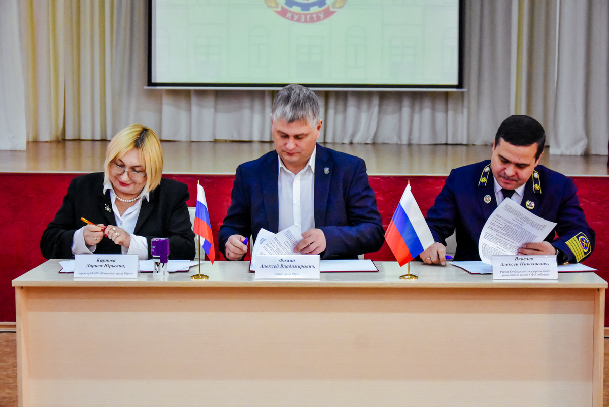 В контексте реализации решения Совета по кадровой политике КузГТУ о создании ресурсных центров в муниципалитетах области 10 декабря был открыт ресурсный центр предпрофессионального образования на базе МАОУ «Гимназия города Юрга». Трехстороннее соглашение о сотрудничестве в сфере организации практико-ориентированного обучения учащихся средних общеобразовательных школ Юргинского городского округа с погружением в технологическую и инженерную среду индустрии Кузбасса подписали глава города Юрги Алексей Фомин, директор гимназии Лариса Карпова и ректор КузГТУ Алексей Яковлев. В церемонии открытия приняли участие также директор Юргинского машиностроительного завода Виктория Мирошниченко, сотрудники Управления образованием Администрации города Юрги, директора школ и ученики 10-11 классов гимназии. С приветственным словом ко всем присутствующим обратился глава города Алексей Фомин. Он подчеркнул, что открытие ресурсного центра дает возможность школьникам получать дополнительные знания и компет