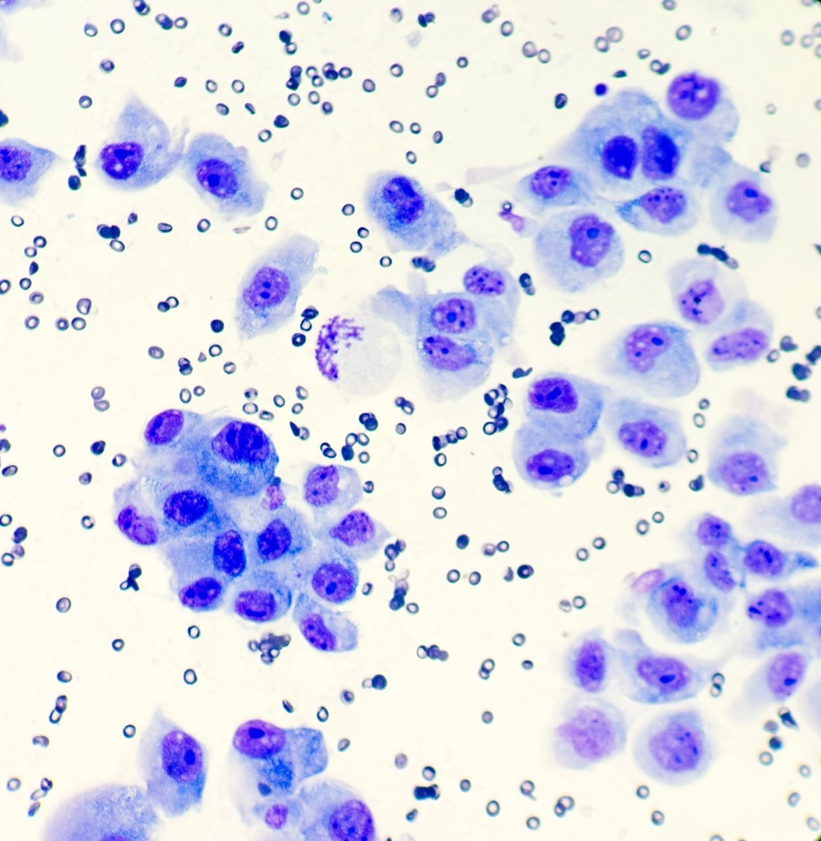 Митотическая фигура при аденокарциноме лёгкого. Объектив 40x. #цитология #легкое #митоз