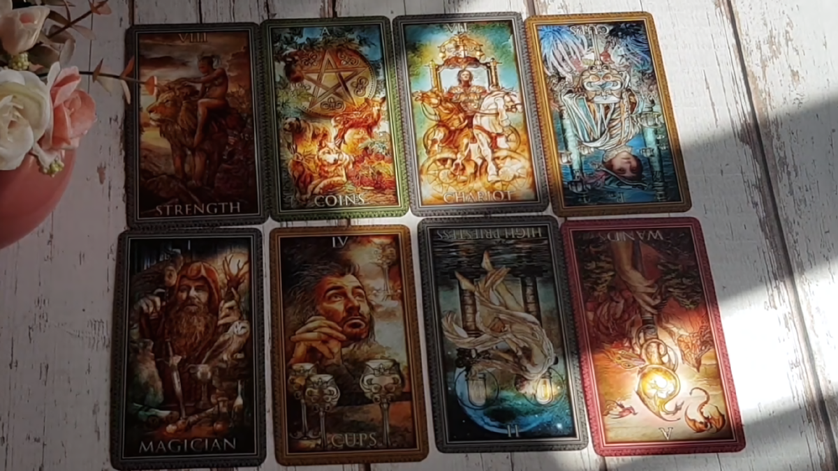 Всем привет, с вами Анна, и сегодня я предлагаю вашему вниманию расклад, который я назвала «Сидит и чешет репу: его мысли о вас прямо сейчас». Давайте посмотрим, кто к нам сегодня пришёл, и сразу — Сила, и не просто сила, а такая, что ох и не простой мужичок: это Лев, это мужчина с животной, почти первобытной страстью, упрямый, непредсказуемый, сексуальный, уверенный в себе, и, судя по всему, имеющий отношение к силовым структурам или хотя бы к авторитету в своей среде; он — Туз Пентаклей, и это не просто деньги, это статус, это наличность, это ощущение собственной значимости, которое он лелеет как редкий камень; он высокого мнения о себе, он считает, что выглядит отлично, он любит вкладывать в себя, он гордится собой, и да, он — заносчивый, эгоистичный, самовлюблённый, но при этом — очень активный, потому что рядом — Колесница, и это не просто движение, это напор, это человек, который идёт к цели, как Цезарь, не останавливаясь ни перед чем, не сворачивая, не сомневаясь.