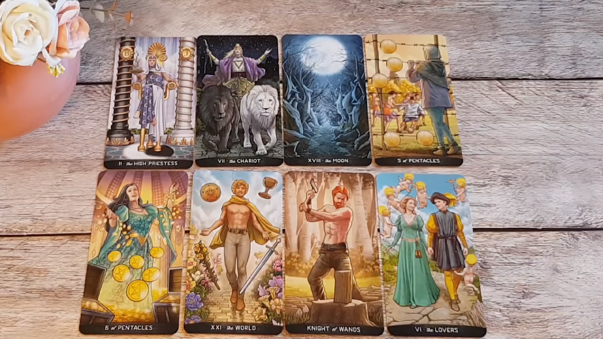 Это не та женщина, которая ухаживает, лелеет, заботится, поддерживает — это та, которая управляет, контролирует, руководит, как будто любовь — это не чувство, а должность в корпорации, на которую она его наняла без его согласия. И да, в её внешности — мужские черты: крепкая, почти кряжистая фигура, мускулистые ноги, грубоватые черты лица, неповоротливая походка — всё это отпечаток Императора, который подавил в ней женственность, превратив её в ту самую «дурь», которая думает, что быть сильной — значит командовать, а не дарить тепло. Она боится старости, она боится одиночества, и именно поэтому она цепляется за этого мужчину — не из любви, не из уважения, не из желания построить что-то настоящее, а из страха остаться одной, из расчёта, из потребности в статусе, и Десятка Пентаклей подтверждает: она видит в нём семью, дом, детей, стабильность, и если это ваш муж — она не хочет его отпускать, потому что для неё он — не человек, а средство достижения цели.