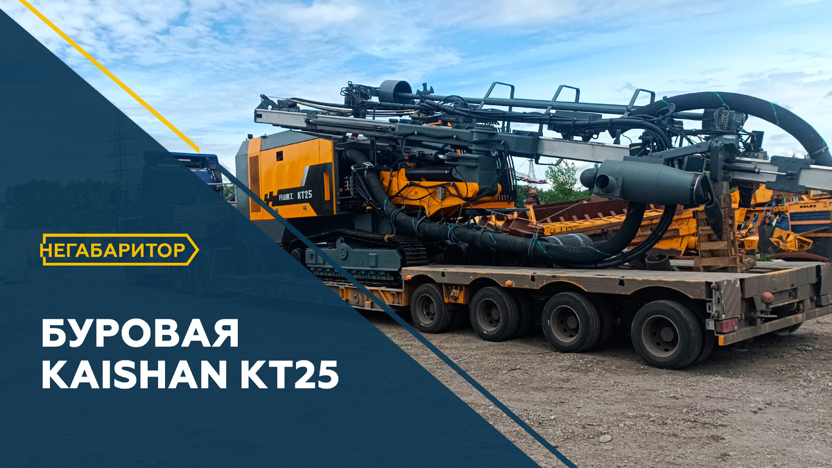 Установка KT25 для открытого бурения: вертикально, под углом и горизонтально. Габариты: 9,8 х 4,4 х 3,8 м Вес: 36,4 т Работали на сцепке Sitrak с 4-осным корытом.