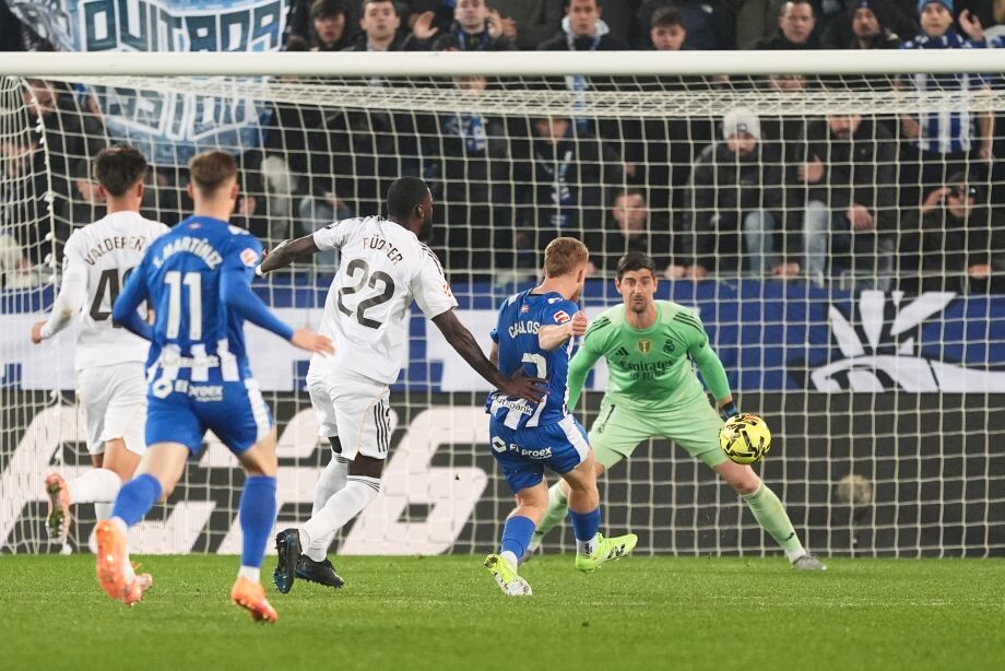 Говорят, этот матч был последним шансом для Хаби Алонсо. Инсайдеры шептались: если не выиграет против Алавеса — всё, финита. Насколько это правда — непонятно, но атмосфера была та ещё. Реал выставил в основе 19-летнего Вальдепеньяса, который вообще дебютировал во взрослом футболе. Причём не на родной позиции центрального защитника, а на левом фланге — потому что Менди травмирован, а Фран Гарсия дисквалифицирован. Мбаппе тоже было непонятно — сможет ли играть. Но он вышел. И сразу начал творить. 💥 Мбаппе попал в перекладину, а потом вогнал как надо 8-я минута. Килиан бьёт — штанга звенит. Близко, но мимо. Зрители ещё не успели выдохнуть, как на 24-й минуте француз приложился с линии штрафной практически в угол — без шансов для вратаря и защитников, которые пытались накрыть. Красота! Для Мбаппе это уже 56-й мяч в календарном году за клуб. Он близок к рекорду Роналду, который в 2013-м наколотил 59. У Килиана осталось два матча до Нового года — с Талаверой в Кубке и с Севильей в чемпиона