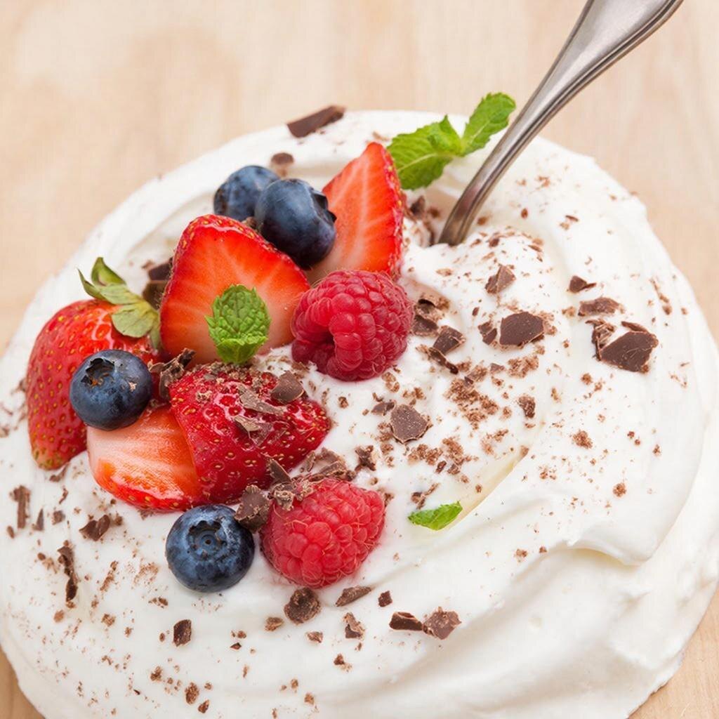 Лёгкий, сливочный и нежный — этот семифредо отлично заменяет мороженое, но содержит меньше жира и больше белка. Подойдёт как десерт после обеда или как полезный перекус. В рецепте звездой является натуральный йогурт: он даёт текстуру и белок, а взбитые белки — воздушность без лишних калорий. 😊 Ингредиенты (выход ≈ 700–750 г, 7–8 порций по 100 г) - 500 г натурального греческого йогурта 2% - 100 г сливок 10% (для нежности; можно заменить 0% густым йогуртом) - 2 яичных белка (или пастеризованные белки) - 20 г мёда или 1–2 ст. л. жидкого подсластителя по вкусу - 50 г ягод (для вкуса и цвета) - щепотка ванили или цедры лимона по желанию 🍋 Совет: если вы беременны или у вас ослаблен иммунитет, используйте пастеризованные белки или заменители (например, взбитый aquafaba). Пошаговый рецепт 1. Охладите миски и венчик — так белки лучше взбиваются. 2. Взбейте белки до устойчивых мягких пиков. 3. Смешайте йогурт, сливки, мёд и ваниль до однородности. 4. Аккуратно введите часть взбитых белков в