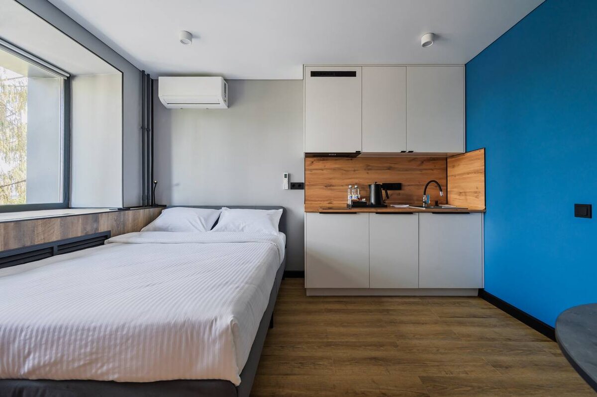Продолжаем детальный обзор апартаментов FREEDOM 🛋️ Следующий герой — номер СТАНДАРТ с одной двуспальной кроватью и кухней. Площадь: 18 м². Вместимость: 2 человека. Стоимость: от 4 500 руб/сутки. Без питания. Отличное решение для влюбленной пары или супругов. Вариант места остановки в путешествии, подарка на годовщину или просто возможности побыть вдвоем. Оснащение номера 🪟 🛏️ Спальная зона: · одна двуспальная кровать · ортопедический матрас Ascona 🍽️ Кухонная зона: · варочная поверхность и вытяжка · мини-холодильник · микроволновая печь · электрический чайник . чайная станция (чай, кофе, сахар) · набор посуды и столовых приборов . бутилированная вода 0,5л на человека 📺 Техника и удобства: · телевизор 43” · высокоскоростной Wi-Fi · кондиционер · стиральная машина · утюг и гладильная доска · фен · сейф · сушилка 🧼 Прочее: · санузел с душевой кабиной · электрическая теплая сушилка · закрытая система для хранения вещей · постельное белье и полотенца · гель для душа, шампунь и