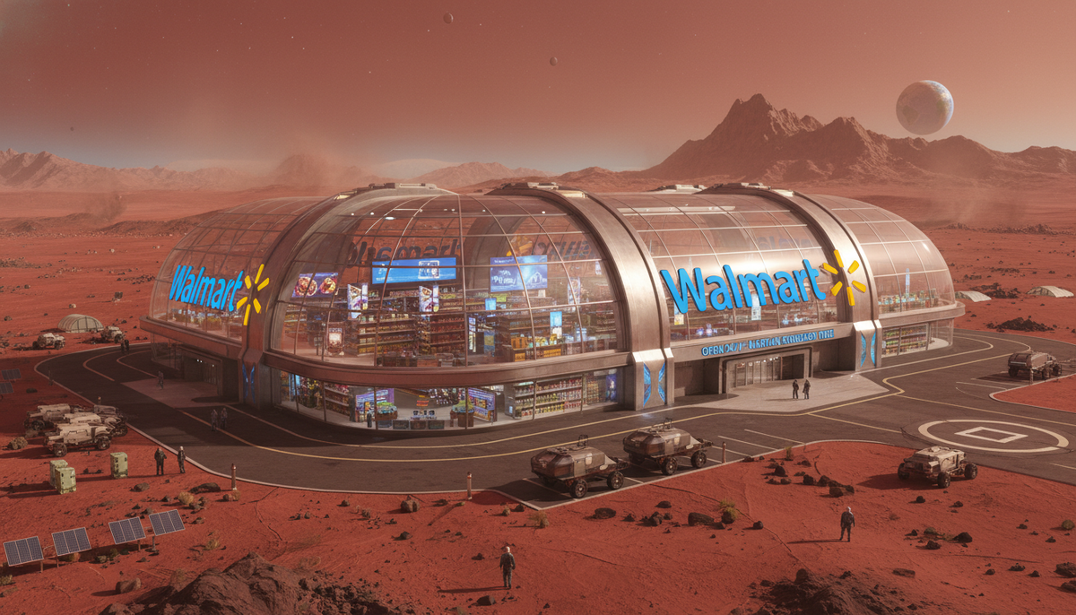 Изображение выше сгенерировано в NanoBanana по запросу: Walmart on Mars