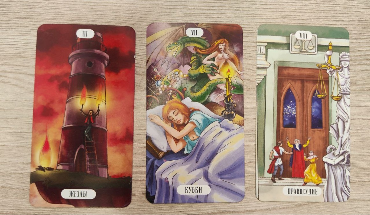 🌟 Карта дня: Тройка Жезлов, Семёрка Кубков и Суд