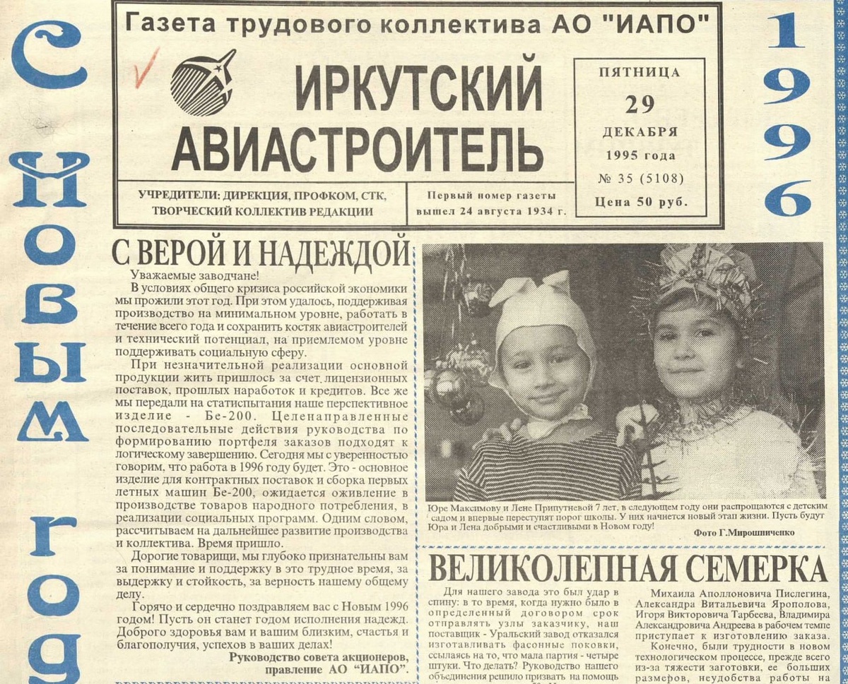 В базу данных добавлено 156 выпусков газеты «Иркутский авиастроитель» за 1992–2009 годы. Номера для сканирования предоставлены редакцией газеты «Иркутский авиастроитель» ПАО «Яковлев» Иркутский авиационный завод. i.irklib.ru/hronp/i/?irk-aviastr