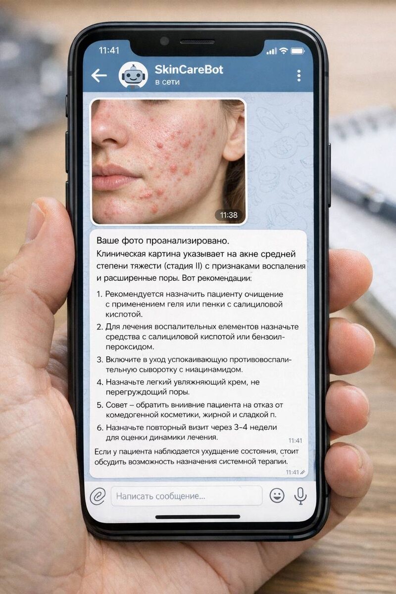 Телеграм бот-диагност для косметологов (тестовый запуск) Представьте: вы отправляете в бот фото кожи клиента - а в ответ получаете анализ состояния, предполагаемую проблему и рекомендации по уходу и тактике работы как для специалиста. 📸 Анализ фото 🧪 Определение проблемы 📋 Рекомендации для косметолога ⏱️ Экономия времени на разбор кейсов Сейчас бот запускается в тестовом режиме. Доступ к боту по подписке с бесплатным тестовым периодом. ❗️Нам важно ваше мнение: 👉 Пользовались бы вы таким ботом в работе? 👉 В каком формате он был бы для вас максимально полезен? 👉 Готовы ли рассмотреть подписку, если инструмент реально помогает в практике? Пожалуйста, проголосуйте в опросе и/или напишите комментарий - ваша обратная связь напрямую повлияет на функционал бота 🙌 В настоящее время формируем фокус-группу: требуются практикующие косметологи и мастера аппаратной косметологии готовые тестировать бота и давать развернутую обратную связь. Напишите в комментарии если желаете принять уча
