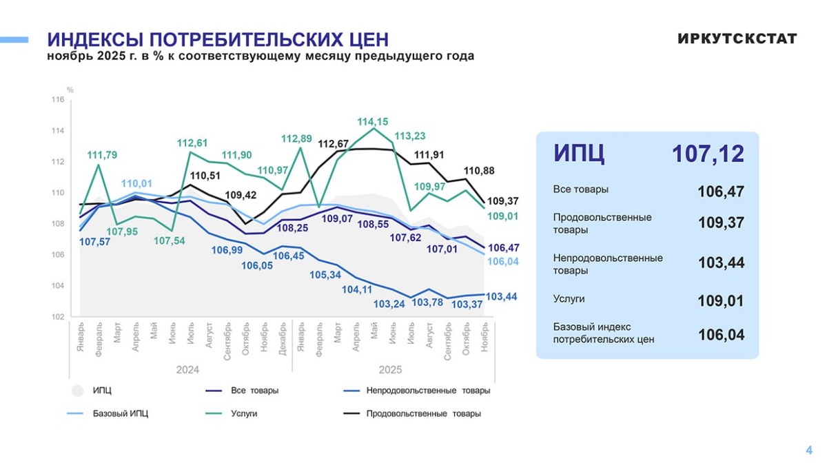 Потребительские цены в Иркутской области в ноябре 2025 года выросли на 0,5%