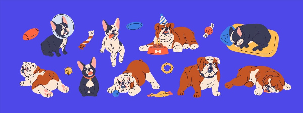 Набор забавных иллюстраций бульдогов