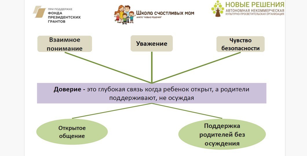 КАК УКРЕПИТЬ ДОВЕРИЕ В ОТНОШЕНИЯХ С ПОДРОСТКОМ 💕Доверие – это глубокая связь, когда ребенок открыт, а родители поддерживают, не осуждая. Доверие проявляется во взаимном понимании, уважении, чувстве безопасности, открытом общении, поддержке без осуждения. 🔆Чтобы усилить доверие подростку и подростка к нам, надо усилить доверие к себе, развивать в себе умение думать о себе в положительном ключе. Поможет в этом практика «Инвентаризация своих сильных сторон». Выполнение такого упражнения вызвало живой отклик у участников: «Появились хорошие чувства, опора на себя, доверие к себе, чувство самоценности». «Приятно, что так много есть во мне хорошего». «Почувствовала, что я молодец!!!» 👨👩👧👦Практика «Изображаем семью» позволит увидеть наглядно ваши взаимоотношения и проанализировать их. Отталкиваясь от этого, можно понять, что мы хотим изменить – это поможет выстроить общую цель и план движения к ней. Многие участники в ходе вебинара показали свои рисунки и поделились своими открыти