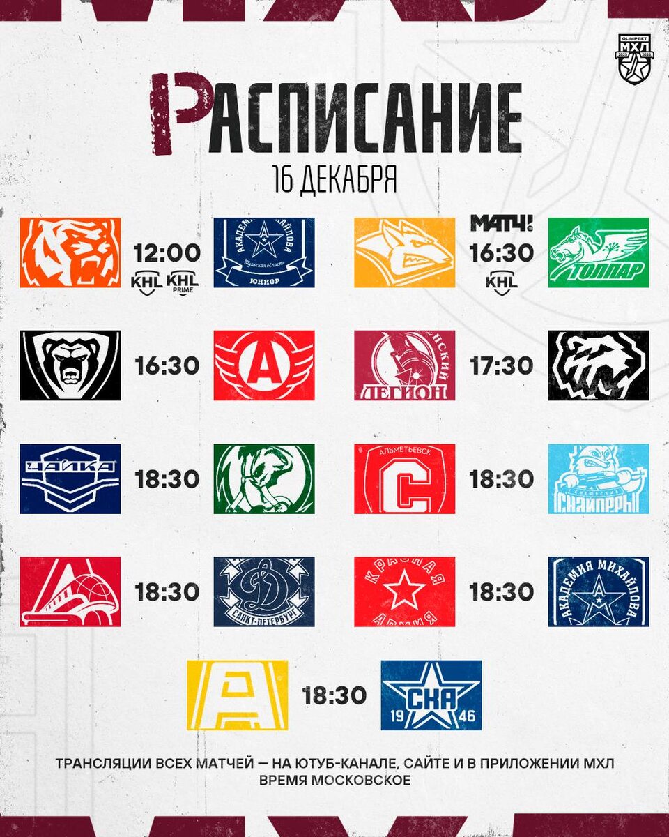 «Толпар» встретится со «Стальными Лисами», «Чайка» принимает на домашнем льду «Мамонтов Югры», на Западе ожидается встреча «Красной Армии» и «Академии Михайлова» 🏒@mhlrus