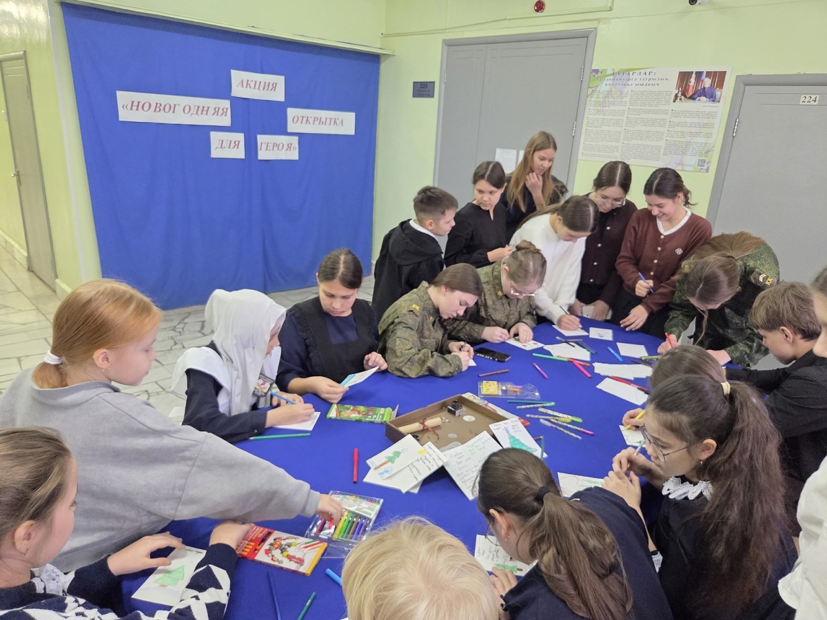 В школе № 4 города Мамадыш первичное отделение Движения Первых запустило акцию «Новогодняя открытка для героя