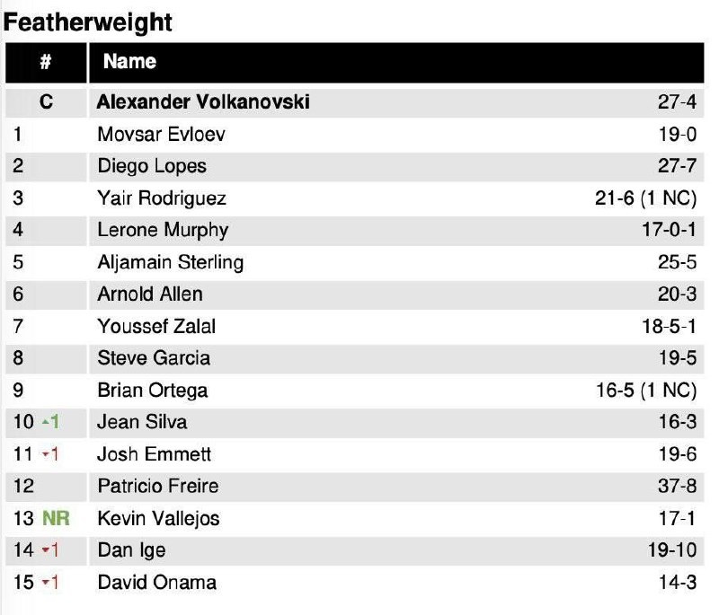 ⬆️ Манель Капе влетел в топ-2 наилегчайшего веса UFC