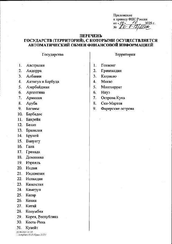 Налоговая обновила список стран для автоматического обмена финансовой информацией. В перечень включены Молдавия, Монголия, Кения, Уганда, Таиланд, Папуа-Новая Гвинея, Сенегал, Тринидад и Тобаго, а также остров Сен-Мартен. Из перечня исключили Бермуды, Британские Виргинские острова, Гибралтар и острова Теркс и Кайкос. ✔️Подписаться ❓Задать вопрос