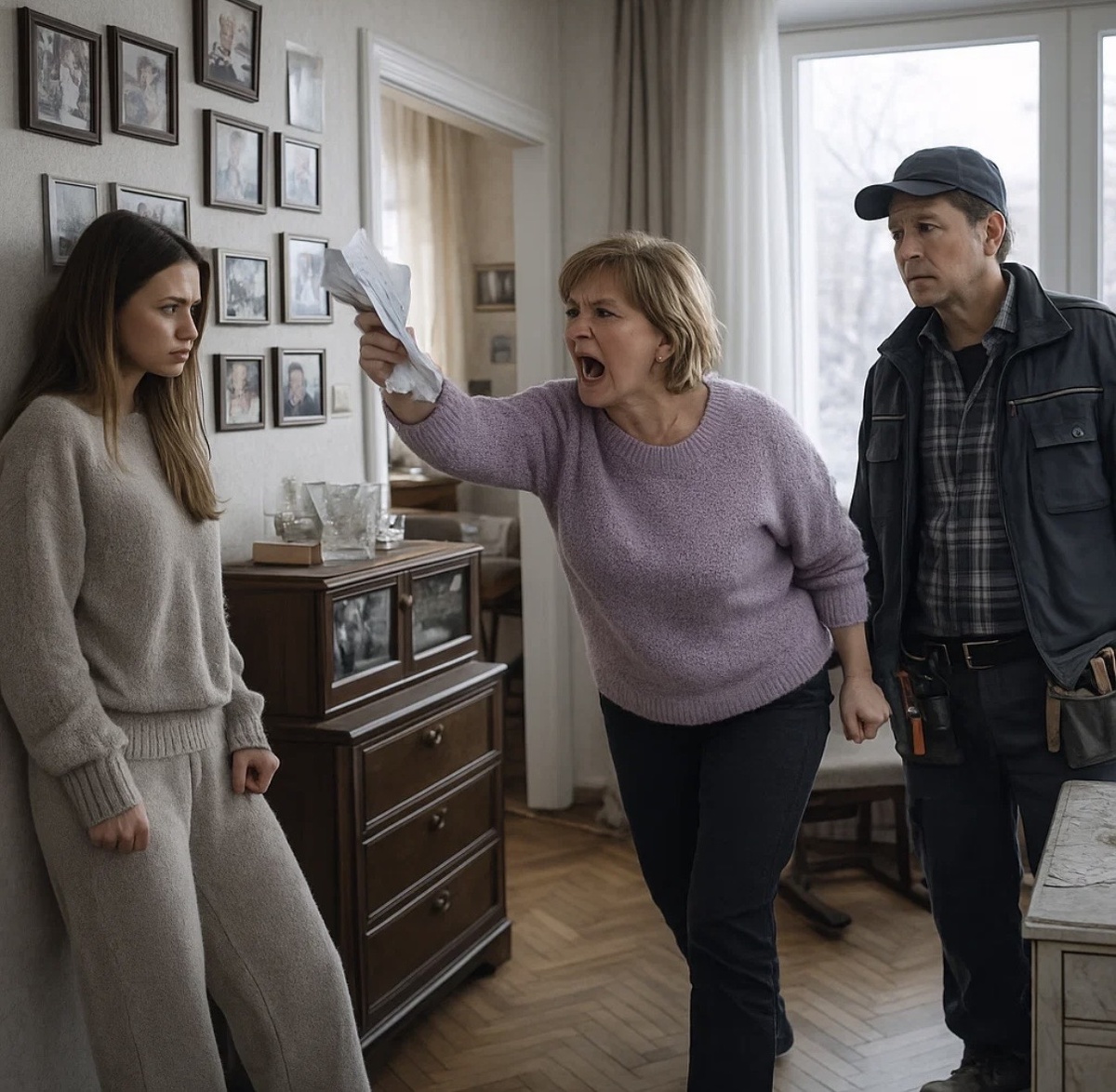 Катя стояла в дверях гостиной, держась за косяк. Пальцы её дрожали — не от страха, нет. От бессилия. Она не ожидала, что тётя нагрянет так рано, с этим мастером, с новыми замками в пакете.