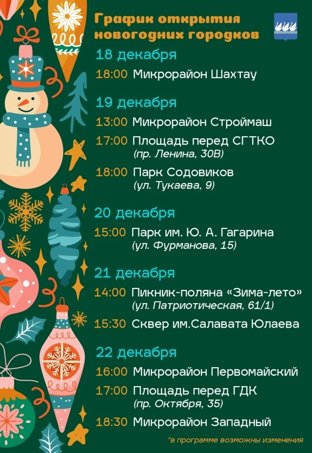 Праздничные новогодние городки будут открываться в городе с 18 декабря.
