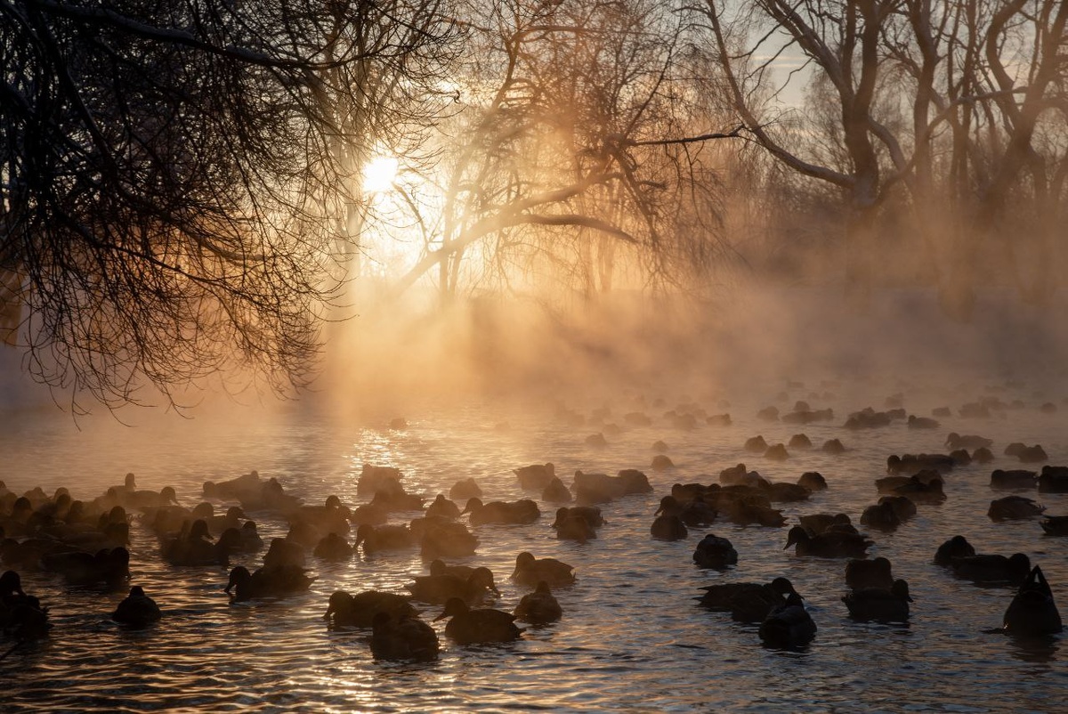 Утки греются в незамерзающем пруду 🦆☀️ #утки #пруд #тепло #природа
