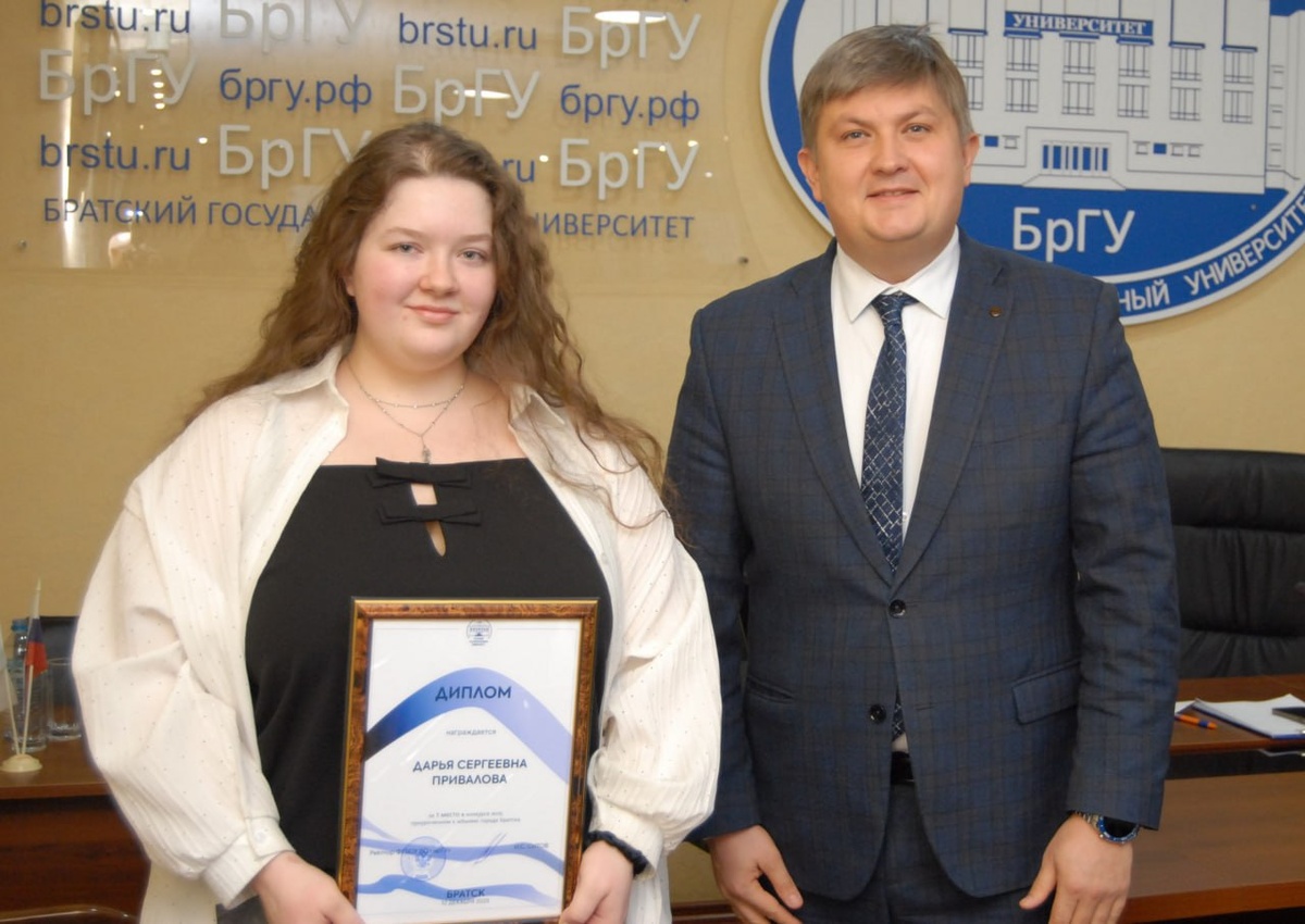 Дипломы и призы ребятам вручил ректор БрГУ! 🥇 Ваши эссе - это настоящие признания в любви нашему городу. От всей души поздравляем, ребята! Гордимся вами! 💛 👻 MAX | 📲 ВК | 📝 ДЗЕН | 📲 ОК