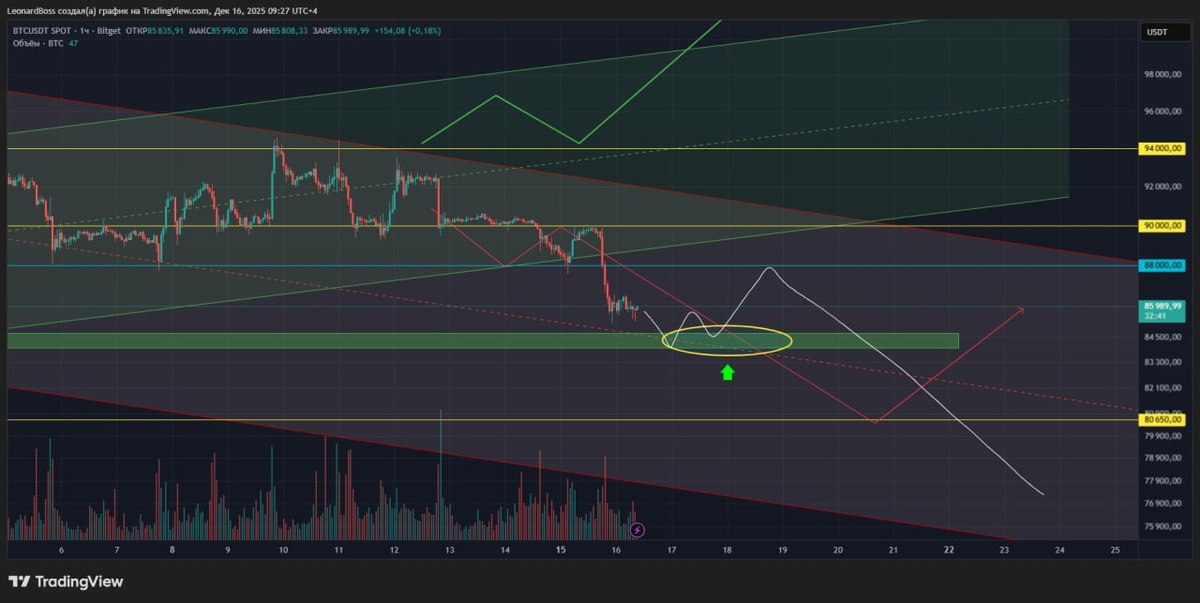 В ответ на пост #мнениепорынку 🕯🕯🕯 ⚠️Всем привет, коллеги, еще раз! Сегодня коротенько, поскольку сценарий снижения как вы видите отрабатывает практически идеально и технически в том числе! Цена совсем немного не доехала до обозначенного блока, но я думаю совсем скоро мы это увидим!! ⚠️Не смотря на позитивный текущий 4Н ТФ, у меня практически не осталось сомнений продолжения снижения цены BTC в сторону уровня 80К. Да, это может произойти не с текущих, а через ретест уровня 88К снизу, чтобы взбодрить розницу и = в очередной раз постричь лонги!! P.s. вот прямо сегодня коллеги, ожидаю тишину по BTC и хорошие отскоки по альте, кому не лень используйте возможности!! ETH меня немного локально разочаровал, хотя прямо сейчас он снова лежит на блоке поддержки с нижней границей 2800$. Также, цена сейчас заключена в расширяющийся среднесрочный треугольник, где у уровня 2850 его нижняя граница, которая если удержит, то снова отправит цену к 3600$, а вот если пробьёт вниз, то отработка фигур