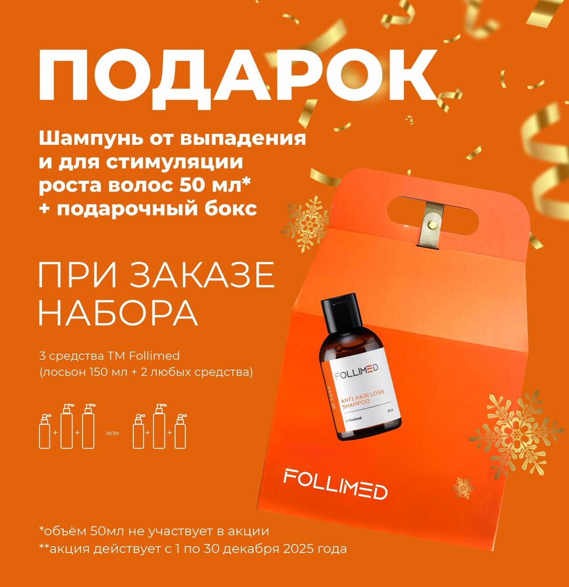 💖Декабрь с подарками от Follimed Весь месяц при заказе набора из трёх средств Follimed вы получаете в подарок: ⭐️ мини-версию шампуня от выпадения и для стимуляции роста 50 мл ⭐️фирменный подарочный бокс Как собрать набор: лосьон 150 мл + любые два средства на выбор 📅 Акция действует с 1 по 30 декабря 2025 года ❗️ Средства объёмом 50 мл не участвуют 💌Если планировали обновить уход или приготовить подарок — самое подходящее время. 🔜 follimed.ru 📱+79030047915 😌 Наш чат 😉 Youtube