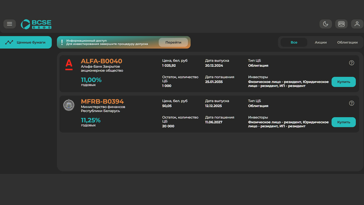 Что дает финмаркетплейсОн позволяет покупать акции и облигации.– Как для рядового пользователя выглядит рынок [ценных бумаг, – прим. MYFIN]? Множество ссылок и приложений банков, лизинговых компаний, профучастников; у каждого свой интерфейс, дерево услуг, условия, комиссии – в этом сложно разобраться, а сравнивать комиссии и предложения между собой – долго и неудобно. Мы решили изменить правила игры, – говорит Андрей Аухименя, председатель правления Белорусской валютно-фондовой биржи. – Идея простая: объединить все финансовые продукты и дать их клиенту. До нас в Беларуси уже существовали платформы для сравнения, но они не позволяли сравнивать все в комплексе. Купить ценные бумаги на таких сравнительных сервисах тоже было невозможно.Наша платформа запускает end-to-end процесс. Мы вдохновлялись тем, как работают лучшие цифровые экосистемы мира. Начали с первичного рынка: считаем, что, если создал платформу для IPO, – сможешь построить все. Результат – бесшовная система, где эмитенты смог