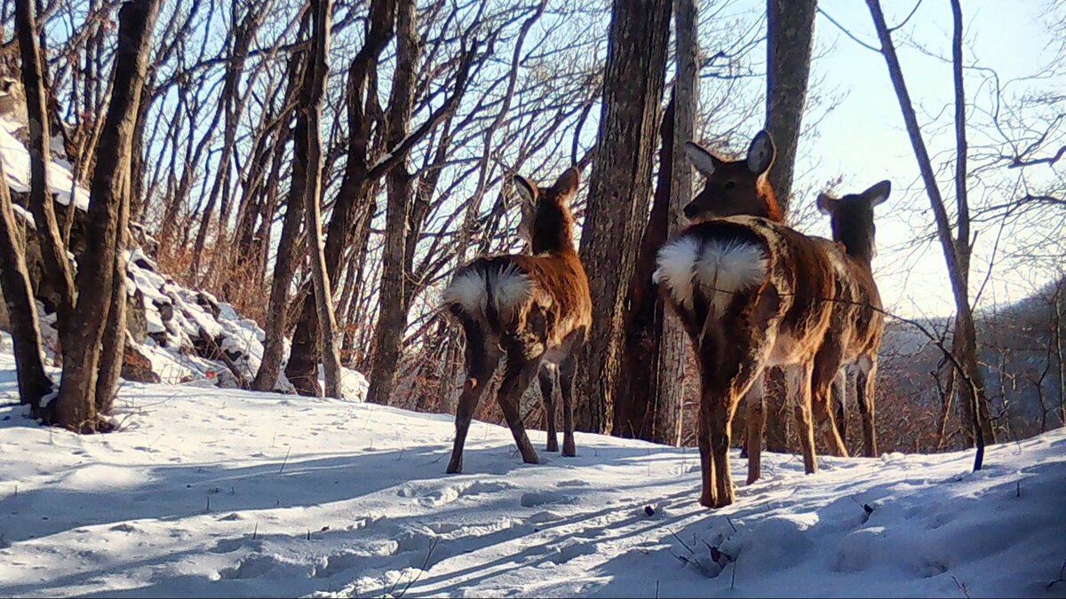 Ну какие «зеркала» 🤩 Три красы вышли на прогулку и очень удачно встали перед фотоловушкой «Земли леопарда». Светлое пятно на задней части оленя называют «зеркалом», оно помогает им не терять друг друга из виду в густом лесу или, например, в тумане. Только сама природа знает, куда держат путь эти пятнистые олени. 🐆 Здесь «Земля леопарда» / МАХ