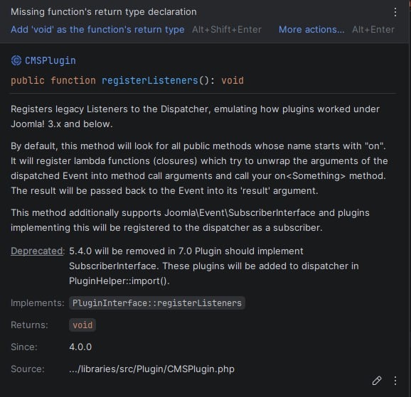 👩💻 Метод registerListeners() в CMSPlugin в плагинах планируется удалить в Joomla 7