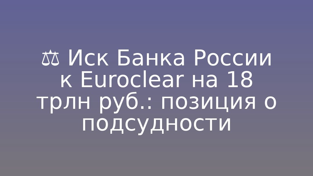 Банк России подал иск к Euroclear в Арбитражный суд Москвы. По данным источников, регулятор указывает, что активы ЦБ являются федеральной собственностью (закон «О Банке России»), поэтому спор относится к исключительной компетенции российских арбитражных судов. Также сообщается, что в юридической позиции ЦБ оспариваются предлагаемые в ЕС механизмы использования замороженных активов.