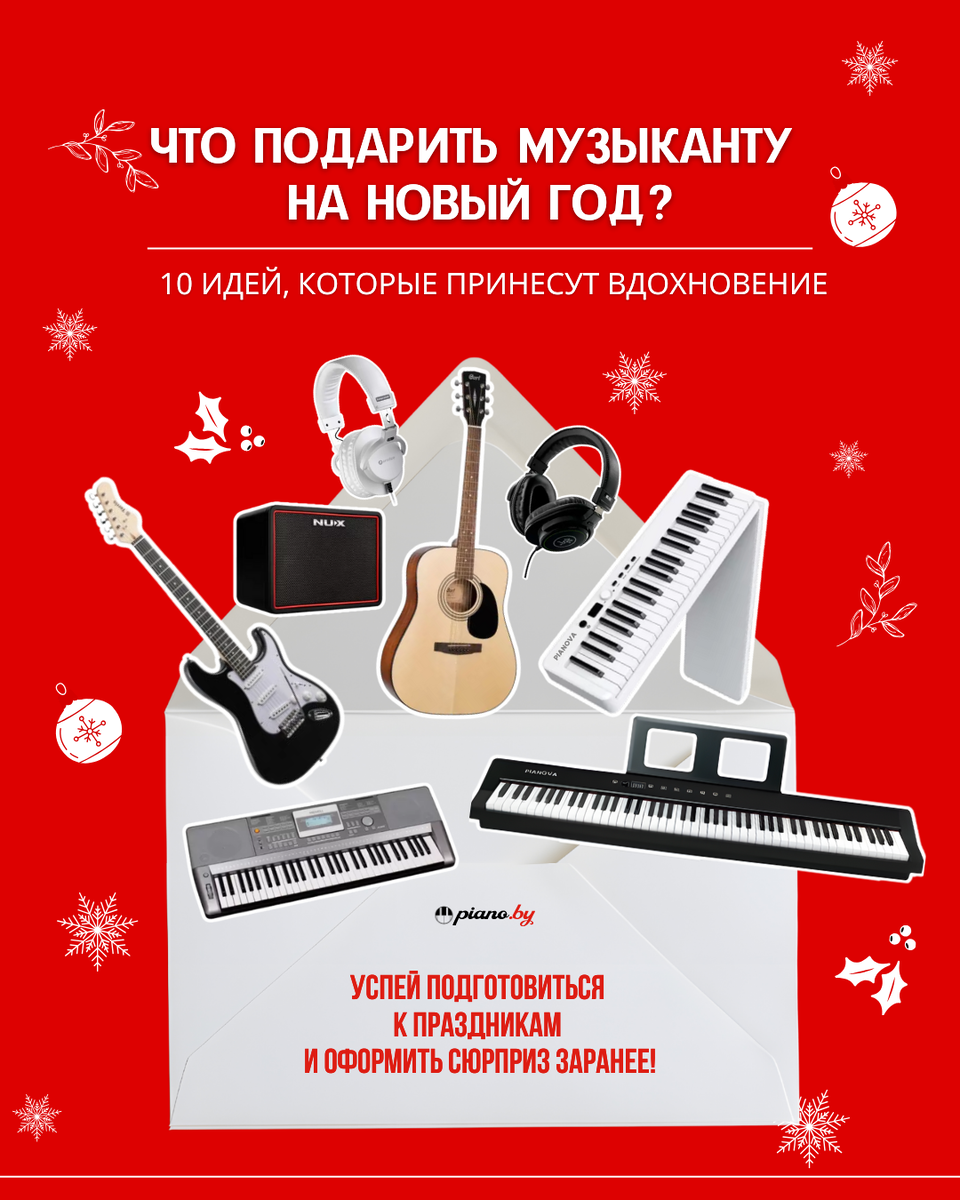 Вы могли искать: подарок музыканту; новогодние подарки музыканту; музыкальные инструменты в подарок; подарок начинающему музыканту; подарок продвинутому музыканту; купить гитару в подарок; цифровое пианино в подарок; синтезатор для начинающих; наушники для музыкантов; музыкальное оборудование подарок; подарок под елку музыканту; что подарить музыканту на Новый год; идеи подарков для гитариста; идеи подарков для пианиста; недорогие подарки музыканту; качественные музыкальные инструменты; вдохновляющие подарки; подарки музыканту с доставкой по Беларуси; купить пианино в Беларуси и России ; музыкальные инструменты доставка СНГ; магазин подарков для музыкантов Минск; PIANOBY; пианобай; PIANOVA; пианова