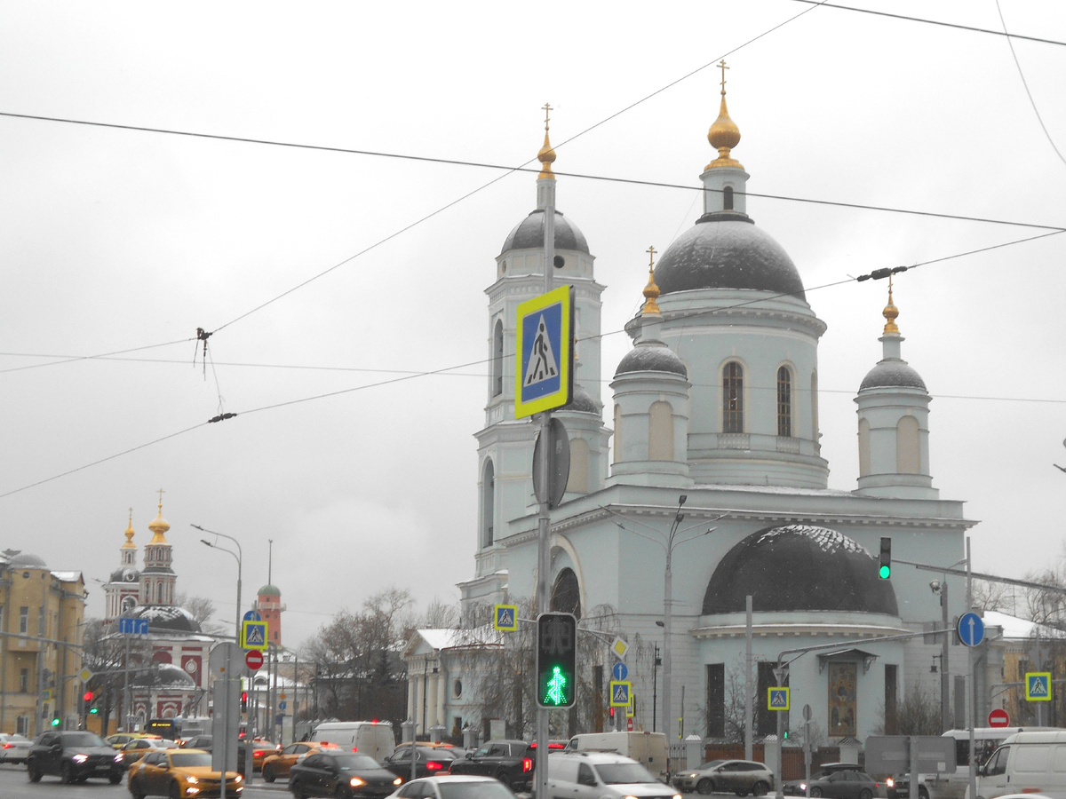 Мы закончили свой предыдущий маршрут у храма Сергия Радонежского в Рогожской слободе, от которого уже виден Храм святителя Алексия, что за Яузой.